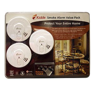 Kidde smoke alarms help to protect you and your family in the event of fire. These alarms are suitable for use in or near all living areas, the Test button checks battery and alarm operation and the Hush feature will temporarily silence a nuisance alarm. These battery powered units are easy to install and require no wiring.